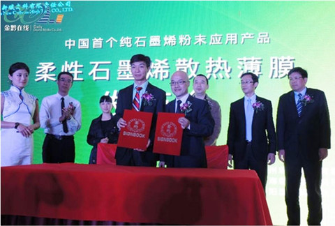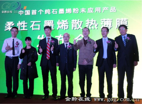 中科院上海微系统所信息功能材料国家重点实验室的石墨烯团队成功开发高质量石墨烯粉体,并通过和上海新池能源科技有限公司合作进行中试量产,所生产的石墨烯粉体成功应用于中国首个纯石墨烯粉体产品-柔性石墨烯散热薄膜。2013年4月2日,贵州新碳高科有限责任公司和上海新池能源科技有限公司联合在贵阳世纪金源大饭店进行了柔性石墨烯散热薄膜产品发布会。贵阳市政府有关领导、贵阳国家高新技术开发区领导、投资方和下游企业等100余人出席了发布会。此次产品发布会获得了媒体广泛关注,人民网、中国日报和贵州地方媒体金黔在线和黔中早报等进行了详细报道。