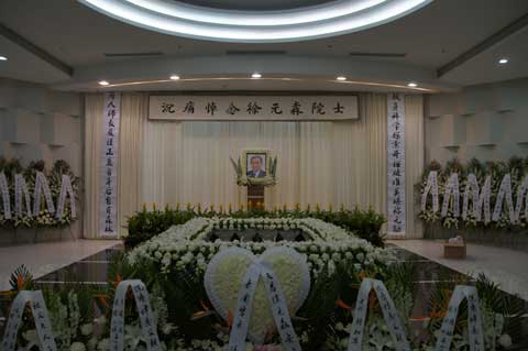 这位令人尊敬的中国工程院院士、著名冶金和微电子学家面带微笑的遗像悬挂在灵堂上方,一幅挽联高高地悬挂在灵堂走廊外两侧,“献身科学探索开拓破难关堪称元勋,为人师表严谨正直看身后自有森林”,高度概括了徐元森先生的科学贡献和崇高品德。