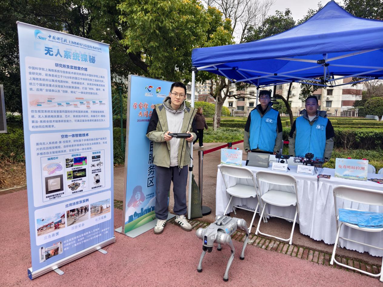 3月5日,在第63个学雷锋活动日到来之际,上海微系统所的“特殊”志愿者——智能机器狗与无人机,走进华阳路街道举办的“学雷锋 做志愿 共同奋进‘十五五’”学雷锋主题活动现场。这些来自仿生视觉系统实验室的“高科技宠儿”平日多在展台上亮相,今天却“走下展台”,走进社区,以满满的科技感为传统志愿服务注入全新活力。