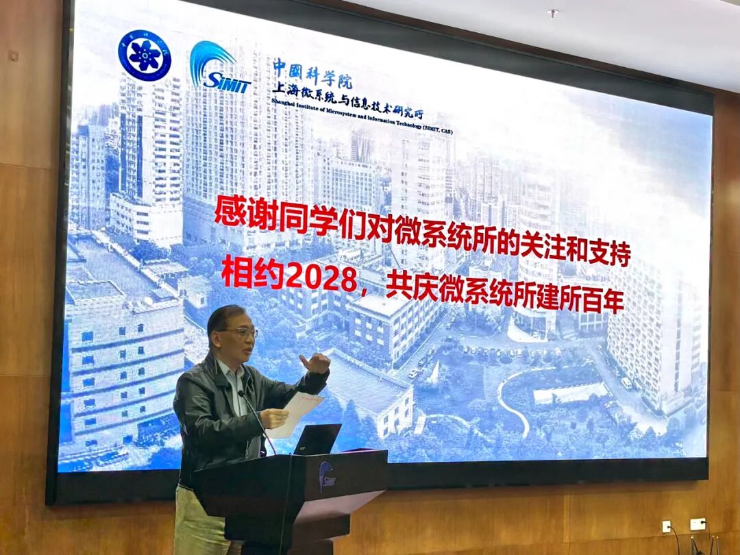 1985级校友、上海微系统前任所长谢晓明作《上海微系统所发展情况报告》, 详细介绍了研究所发展沿革、“十四五”科研进展、“十五五”发展规划和研究所校友工作开展情况等。他指出,上海微系统所在基础研究、关键核心技术攻关等方面已取得显著成效,未来发展之路任重而道远,要持续提升发展能力,充分践行国家战略科技力量使命担当;希望校友们一如既往地支持研究所发展,为百年强所建设添砖加瓦。