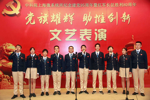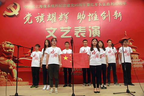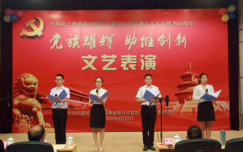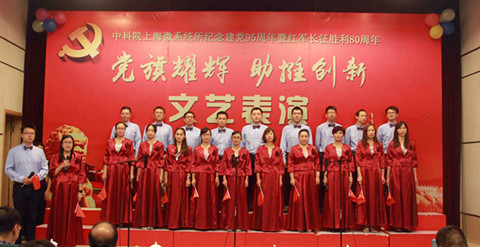 为了纪念建党95周年暨红军长征胜利80周年,9月29日,上海微系统所举行“党旗耀辉助推创新”文艺汇演。所新一届两委委员、全所党员、职工、部分离退休及研究生近300人参加了汇演。